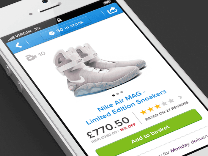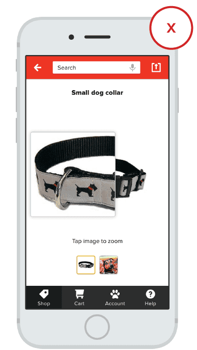 在首屏上显示主图像。不要让用户滚动屏幕才能看见产品的主图像。主要的产品图像应锚定在显著位置,以便交易你的优先的产品。