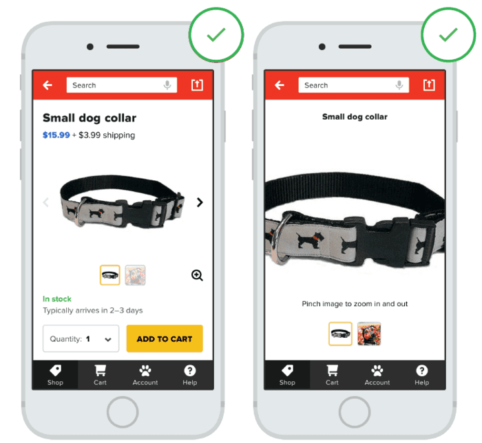 为了使图像更有效率,你要使图片尽量的大。那么,当你已经最大化了你的图像的大小,您需要集成放大产品的特定细节的能力。这对于服装等产品尤其重要,用户对这些产品的细节更关注。放大的图像还需要保持高质量。