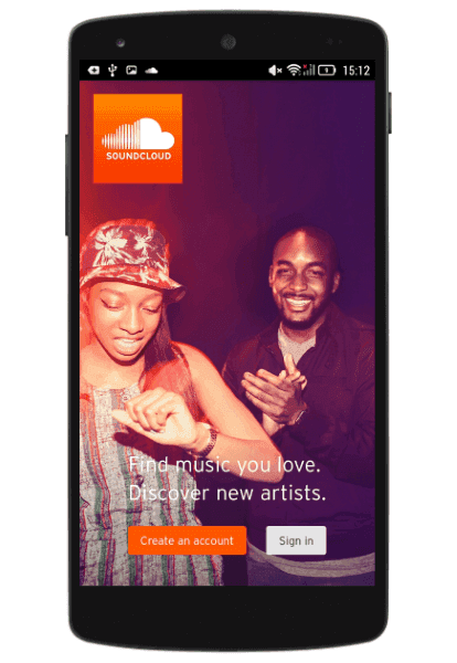 在SoundCloud的首页中,屏幕按钮被图像遮蔽
