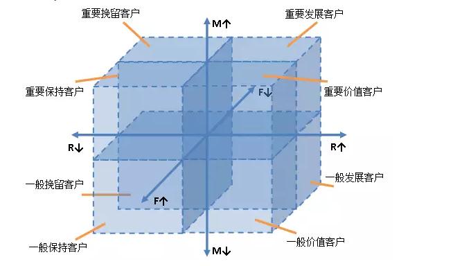 通常,我们会将这3个指标分为8类,其实最多能到125类,不过确实没必要划分的那么详细。