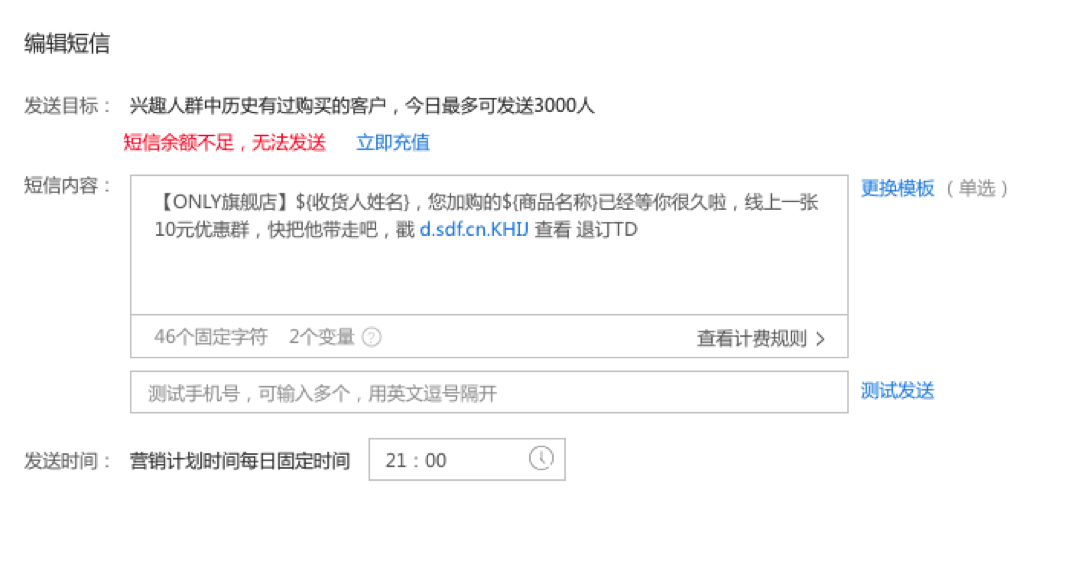并对对触达人群进行全链路的监控,识别哪些人进行回店浏览、加购、收藏及成交。其短信通道限制了发送数量,避免造成体验问题,待创建了短信任务模板,点击发送,就可以进行相应的短信营销了。是不是很简单。。。
