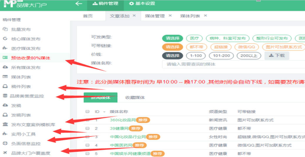 品牌大门户为企业提供新闻源营销服务,将您的软文在各大平台上进行发布,提升顾客对于企业及产品的认知程度,提升产品的知名度及销售。